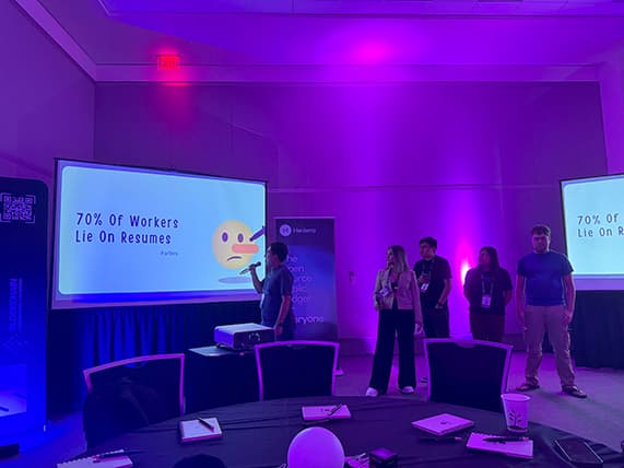 After 15 minutes of collaboration and discussion, each group presented their interpretations on stage, diving into different real-world use cases using Hedera services. First place was awarded to the “Not Yet” team, who introduced a novel concept centered around resume detection and due diligence utilizing Hedera’s technology.