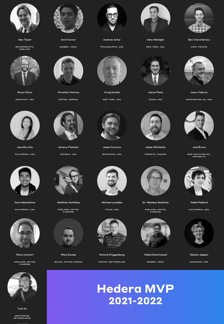 Since the community’s first set of MVPs in 2018, the process for electing MVPs was handled by Hedera’s Community Team. We analyzed the members in the community and worked together as a team to put together a list of individuals who went above and beyond to help educate and grow the Hedera community during that past year. This year we elected for a new process to select the MVPs for 2021. For the first time, the active MVPs from 2020 were able to choose the new roster of MVPs for 2021. Collectively, they’ve selected 11 first time MVPs and brought back 15 in acknowledgement of their continued support. I’m excited to share the results of this process, and welcome our new 2021 MVPs.