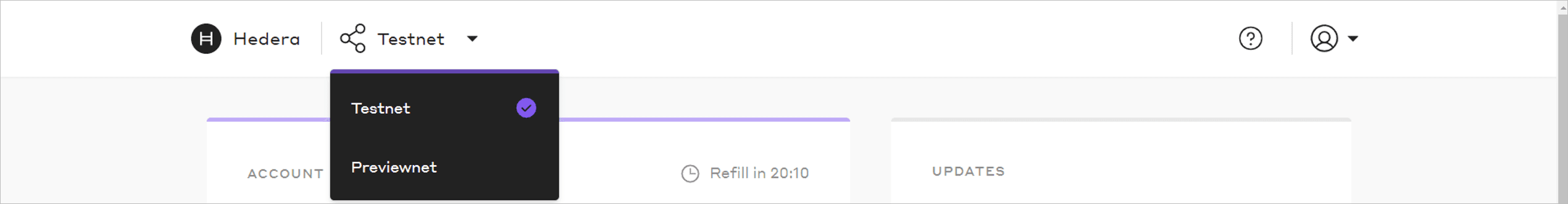 The Hedera Portal also gives you the ability create preview network (previewnet) accounts. This network gives developers early access to new features before testnet and mainnet releases. You can choose the network for which you want to display credentials.