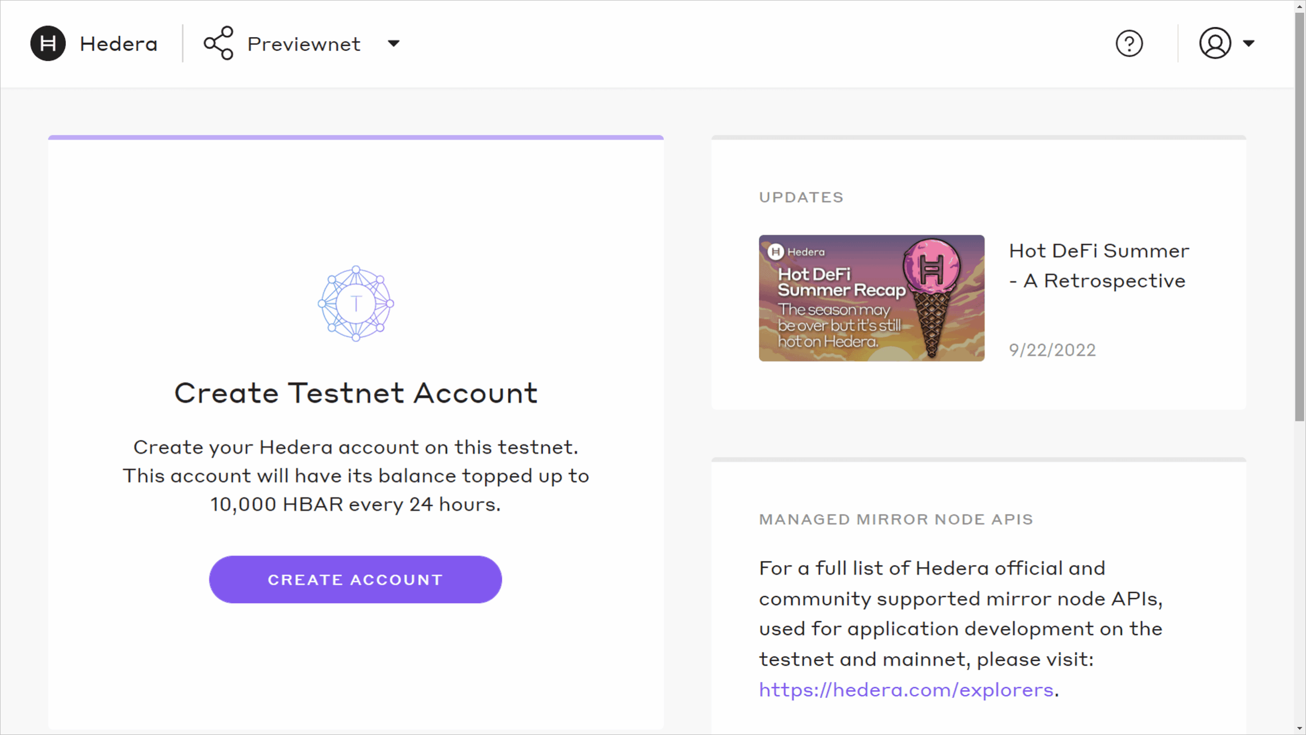 After toggling to Previewnet, create your first previewnet account with just one click!