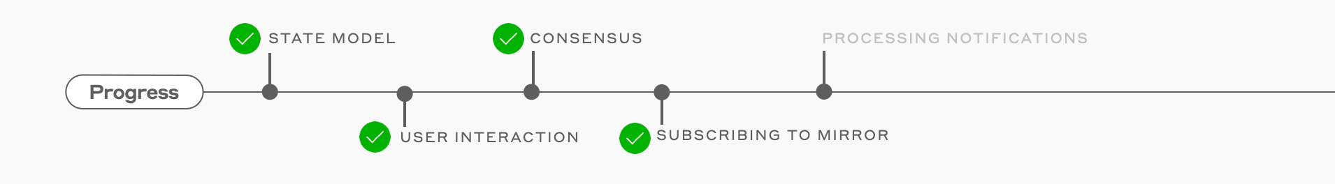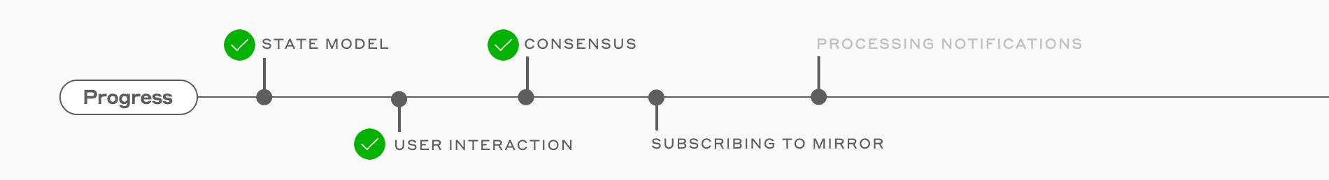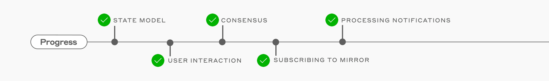 We have a means of capturing user requests, submitting these requests to HCS for consensus, receiving notification that consensus has been reached, and finally a means to process these notifications into local state changes.