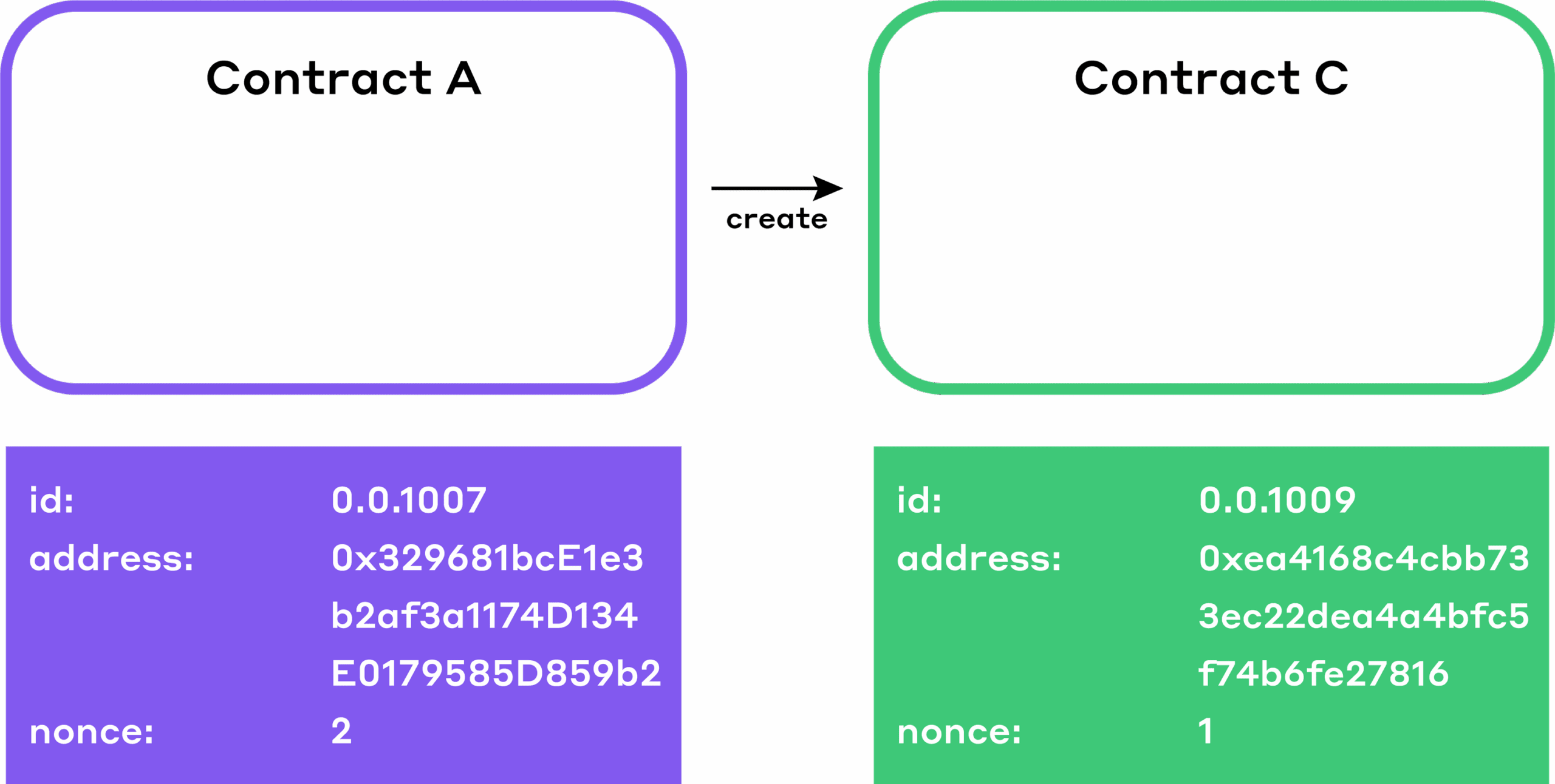 This means that should Contract A create Contract C, Contract C will now have a nonce of 1 and an EVM address that is the result of the CREATE operation using Contract A’s address and Contract A’s nonce at the time. With this, contract addresses will line up with the expected EVM format (e.g., 0x329681bcE1e3b2af3a1174D134E0179585D859b2).