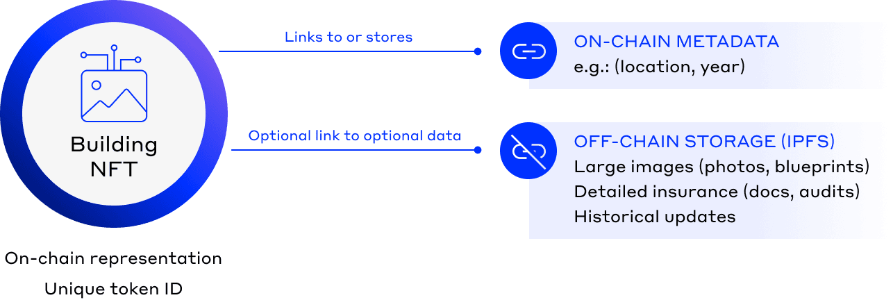 Your smart contract stores that CID or URL in a mapping (tokenID → string) so that the building’s NFT can always reference it.