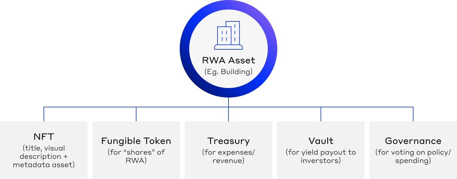 That’s why our accelerator treats each asset as a mini‑dApp consisting of several contracts. The NFT as discussed in our previous blog post is just the tip of the iceberg. Underneath the surface, yet equally as important to making the tokenized property function effectively, we have: