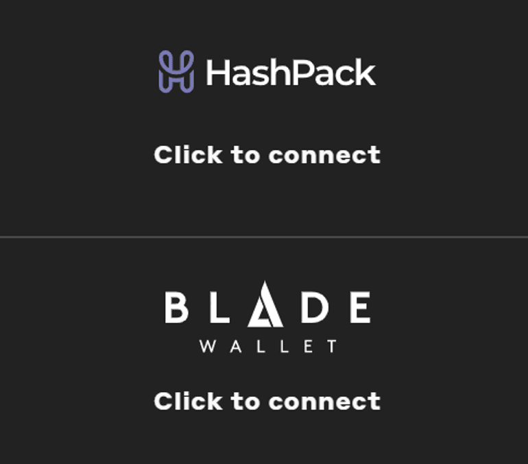 Mintbar supports the Hashpack and Blade wallets on desktop and the Hashpack dapp explorer on mobile. We decided not to support the pairing string method.