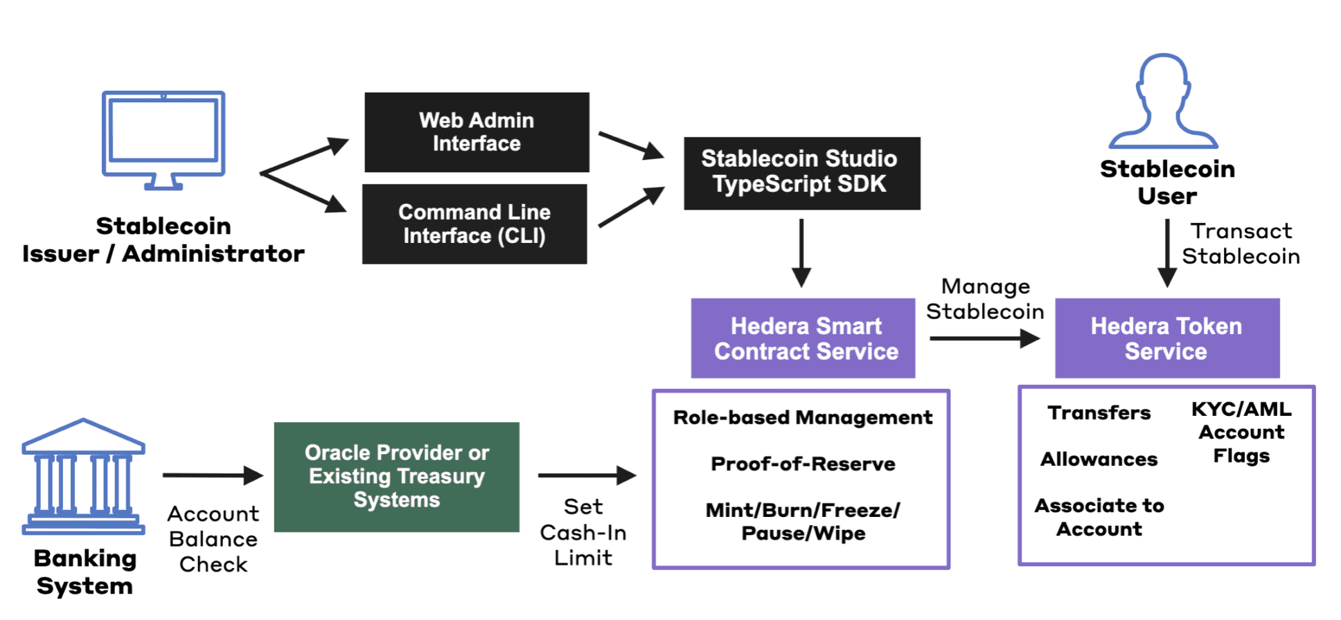SDK: The SDK provides a set of tools and libraries to help developers build and deploy stablecoin applications on the Hedera network. It simplifies the process of interacting with smart contracts and HTS.