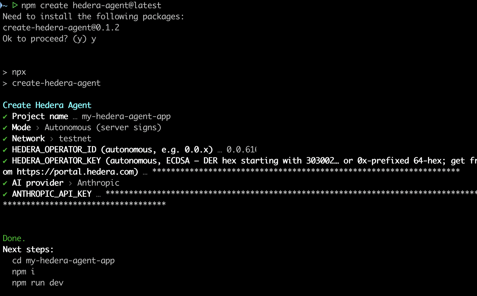 npm create hedera-agent@latest